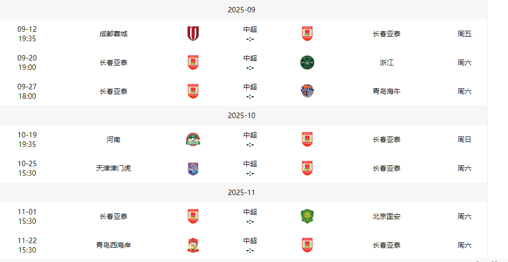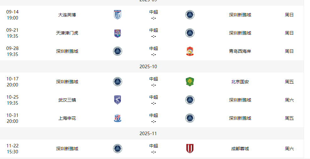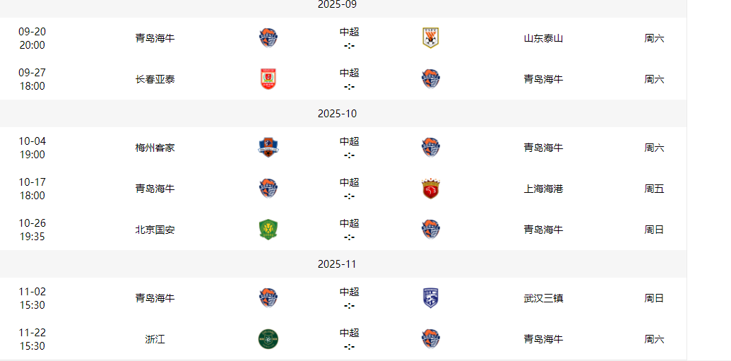 最后7轮对手:成都蓉城、浙江队、青岛海牛、河南队、天津津门虎、北京国安、青岛西海岸