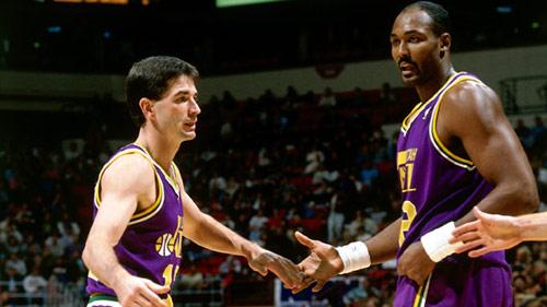 斯托克顿和科比一样,从替补开始生涯,从第三第四个赛季开始,他的数据慢慢成长为全明星级别的球员。1987-88赛季,斯托克顿场均14.7分、13.8助攻、3.0抢断的数据荣膺助攻王,也就是从这一个赛季开始,他连续9年一直获得助攻王的称号,和乔丹十个得分王的称号有得一比。